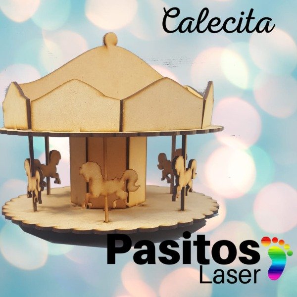 1 calesita con 6 caballos caramelera arriba 20 cm de diametro x 24 cm de alto