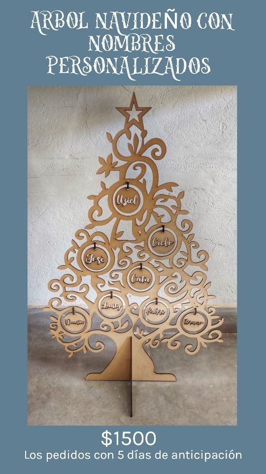 ¡Dale un toque único a tu casa esta Navidad con nuestro Árbol Navideño de MDF con esferas y frases festivas! 🌟