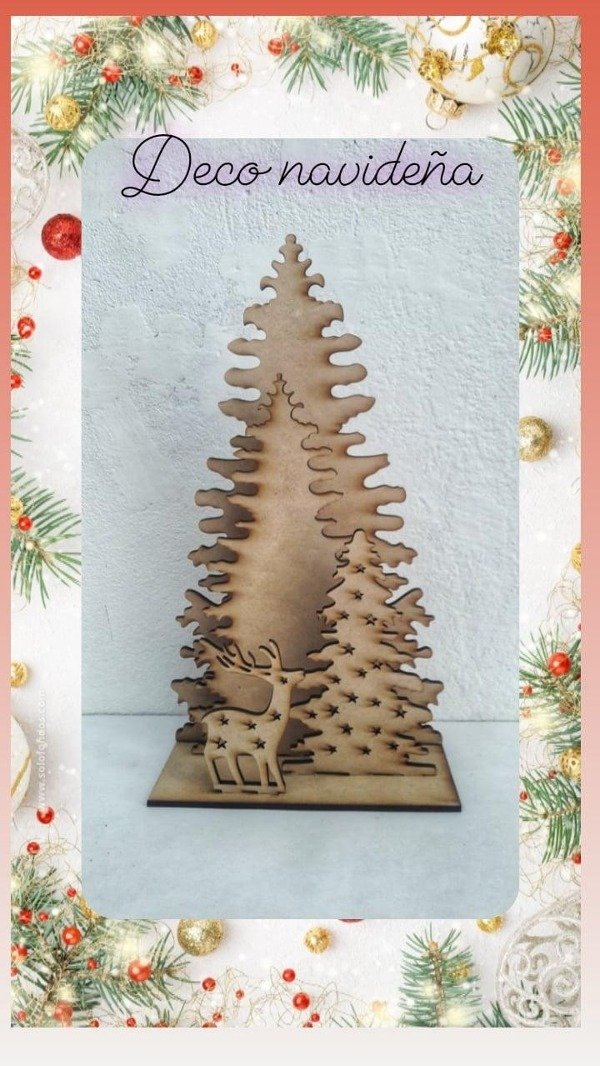 Dale vida a tus decoraciones con nuestros encantadores Árboles con Renos en MDF, un diseño lleno de ternura y espíritu navideño.