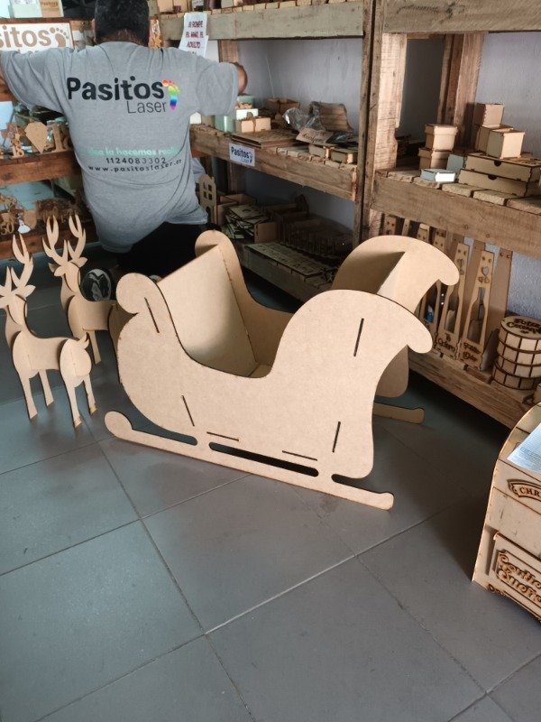 🎅 Impactante, resistente y lleno de espíritu festivo, el Trineo Grande en MDF es la pieza perfecta para completar tus decoraciones navideñas. ✨